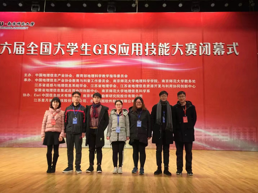 12月8日到10日,由中国地理信息产业协会、教育部高等学校地理科学教学指导委员会主办的第六届全国大学生GIS应用技能大赛在南京师范大学举行。来自北京大学、武汉大学、浙江大学、兰州大学、中南大学、华东师范大学等来自全国97所高校的101支队伍、共540多名师生参加了比赛。由bat365官网周侗、陶菲老师指导的学生团队(成员:康天乐、钱振、胡梦瑾、陆杰)获得了一等奖的好成绩,刷新了我校在该赛事上的最好成绩。