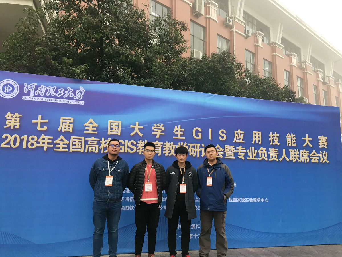 11月30日-12月2日,由中国地理信息产业协会教育与科普工作委员会、教育部高等学校地理科学教学指导委员会主办的第七届全国大学生GIS应用技能大赛在河南理工大学举行。我校bat365在线中国官网登录入口钱振(地理信息161)、刘浩(地理信息161)、陈昊烜(地理信息171)、胡宇宸(地理信息171)组成的学生团队(指导老师:周侗、陶菲)获得一等奖。至此,我校已连续两年在此项比赛中获一等奖。