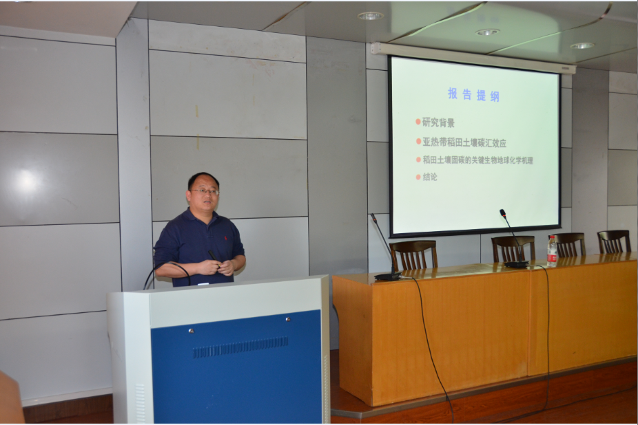 葛体达研究员以稻田土壤碳循环为核心内容,从近30年来我国稻田生态系统中土壤有机碳含量普遍呈升高的现象,深入浅出的阐述了其背后的机理。以水稻土持续固碳的生物地球化学过程及机制等前沿基础性科学问题,土壤有机碳微生物转化系列测定方法,同位素示踪和微生物分子生物学技术,从水稻土外源碳输入(水稻光合碳输入和土壤微生物光合固碳)、土壤有机碳矿化转化特征及其碳循环关键过程的计量学特征等方面,系统解析了亚热带水稻土有机碳长期积累的关键生物地球化学过程和内在机理。
