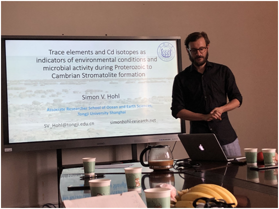 在报告中,Dr.Hohl简要介绍了微量元素和Cd等同位素在地球科学中的应用及相应原理,随后详细讲述了稀土元素(Ce异常)与Cd同位素指标在元古代-寒武纪时期环境变化与微生物活动研究方面的应用。