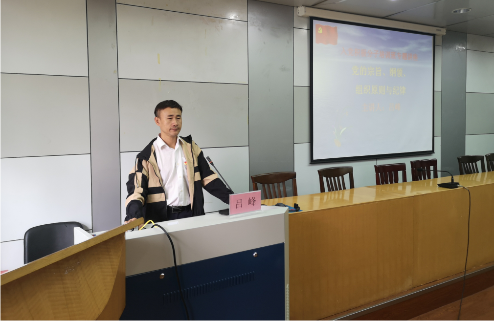 10月13日上午,bat365在线中国官网登录入口第14期入党积极分子培训班第2场专题讲座成功举办。学生第二支部书记、学工办副主任吕峰为98名入党积极分子讲授《中国共产党的宗旨、纲领、组织原则与纪律》。