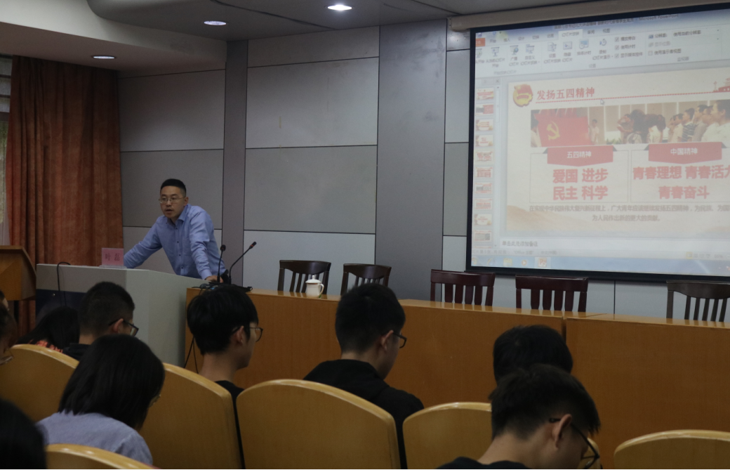 叶磊从“青年应发扬五四精神”“抓好三项基础性工作”“对广大青年的四点希望”三个方面深入剖析习近平总书记在纪念五四运动100周年大会上的讲话精神,要求大家践行、弘扬五四精神,做到勤学、修德、明辨、笃实。同时,他立足于时代特征强调高校培养德才兼备高水平人才的重要性,鼔励大家心怀崇高信念,积极投身兴国强国的伟大事业。