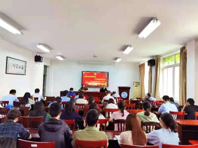 5月12日,bat365在线中国官网登录入口党委召开党员大会,邀请校党委组织部副部长刘丽莉同志为学院全体党员做了题为《汲取党史精神营养,严守党的纪律规矩》的廉政专题报告。报告会由学院党委书记潘晴雯主持。