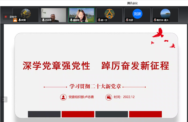 bat365在线中国官网登录入口党委书记潘晴雯主持报告会,要求全体党员深刻把握党章改与不改、变与不变的规律,把党章的明文规定和始终贯穿于党章的原则与精神学深悟透,使之真正成为每一个党员加强党性修养的根本标准,成为指导学院党建工作的根本依据。学院各基层支部要把深入学习贯彻党章作为“三会一课”的重要内容,读原文,结合专业学,结合发挥党员的先锋作用和支部的堡垒作用学,要以党章为镜,以党史明志,把党章的各项要求落实到行动上,体现在工作中,在新征程上做出更大贡献。