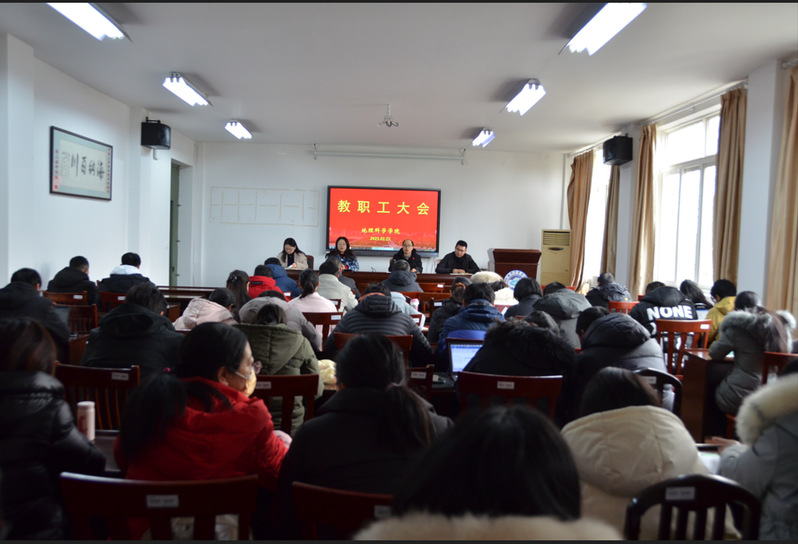 2月22日上午,bat365在线中国官网登录入口召开教职工大会,学习贯彻校第四届教职工代表大会暨第三届工会会员代表大会第四次会议精神,部署新学期工作。
