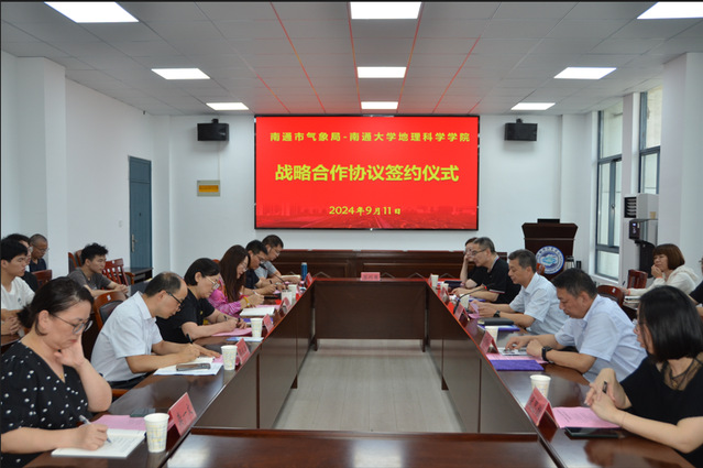 9月11日下午,南通市气象局与bat365官网举行战略合作协议签约仪式,双方本着“优势互补,合作共赢,资源共享,共同发展”的原则,将在共建气象气候研究平台、科技创新合作、服务低空经济、建设实践教育与科普基地、人才培养交流和共建党建联盟等方面加强深度合作。副校长陈玉娟出席仪式。