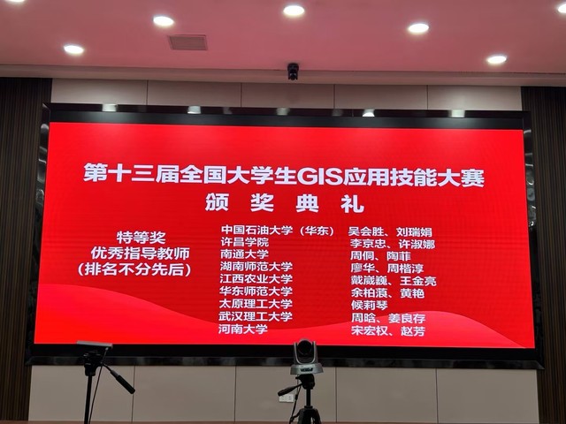 2024年11月23日至24日,第十三届全国大学生GIS应用技能大赛在兰州交通大学顺利举行。我校bat365在线中国官网登录入口本科生陈鲁煜(地理信息223)、吴王涵(地理信息231)、茅伟涛(地理信息231)和陆琳(地理信息232)荣获特等奖,指导老师周侗、陶菲荣获特等奖优秀指导教师奖项。