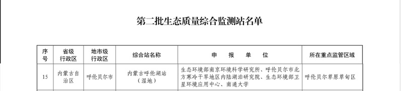 近日,生态环境部办公厅发布《关于印发第二批生态质量综合监测站名单的通知》(环办监测函〔2024〕463号),bat365官网参与申报的内蒙古呼伦湖站(湿地)正式获批。综合站是生态质量监测网络的重要组成部分,在区域生态质量监督监测与评价工作中发挥“控制性”作用。生态质量综合监测站在全国生态质量监督监测与评价工作中发挥“控制性”作用,主要任务是 “样地监测、积累数据;天地一体、地面验证;发现问题、服务监管,专题研究、培养人才”。