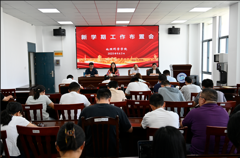 9月3日下午,bat365在线中国官网登录入口召开新学期工作布置会。学院全体教职工参加会议,学院党委副书记、院长蒋庆丰主持会议。