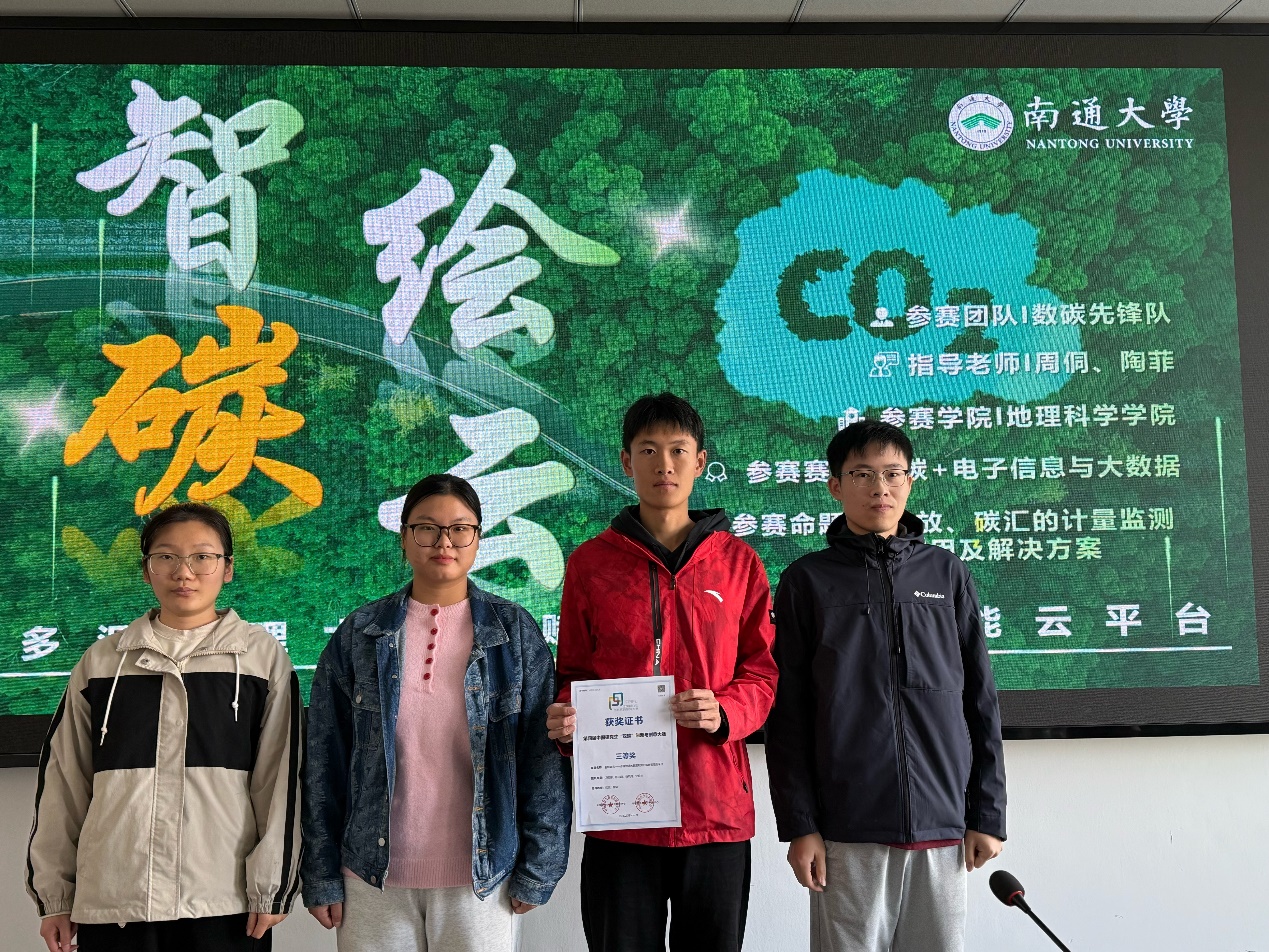 近日,“沈化百特杯”第四届中国研究生“双碳”创新与创意大赛公布获奖结果。我校bat365在线中国官网登录入口报送的专家命题赛道作品《智绘碳云——多源地理大数据赋能的双碳智能云平台》(团队成员:冯丽娜、殷晓田、魏天资、杨留步(研25资源与环境专硕),指导老师:周侗、陶菲)获得专家命题赛道三等奖。