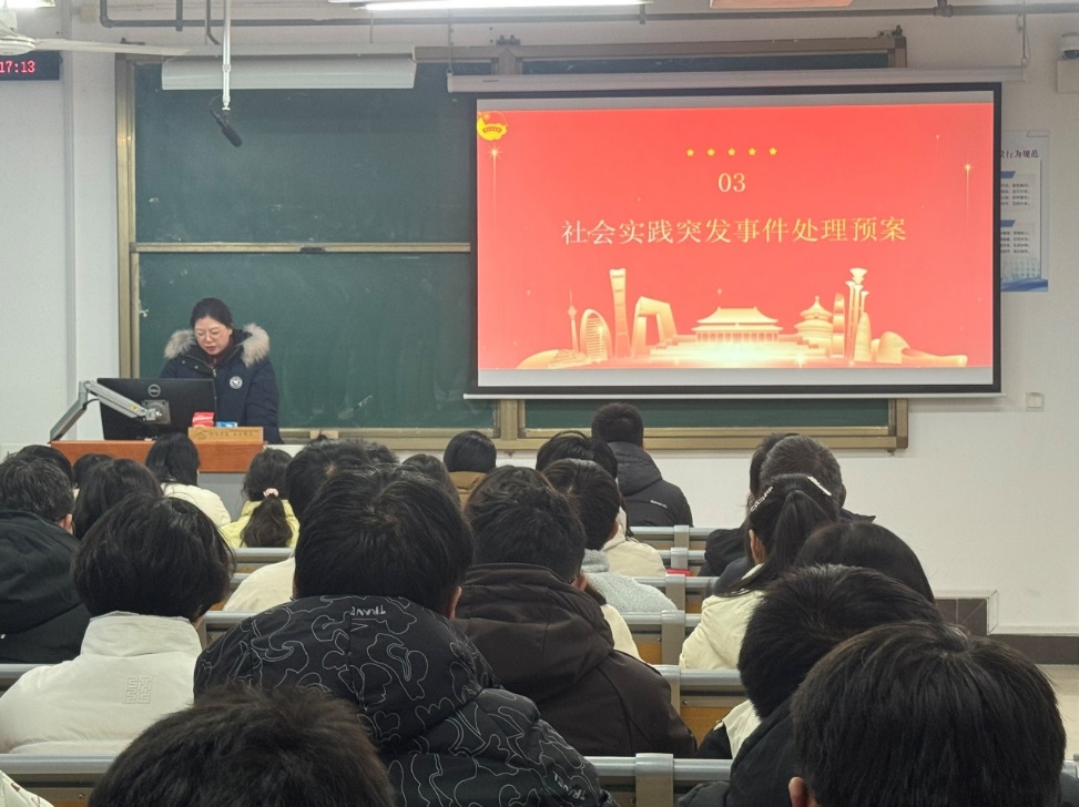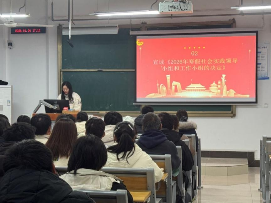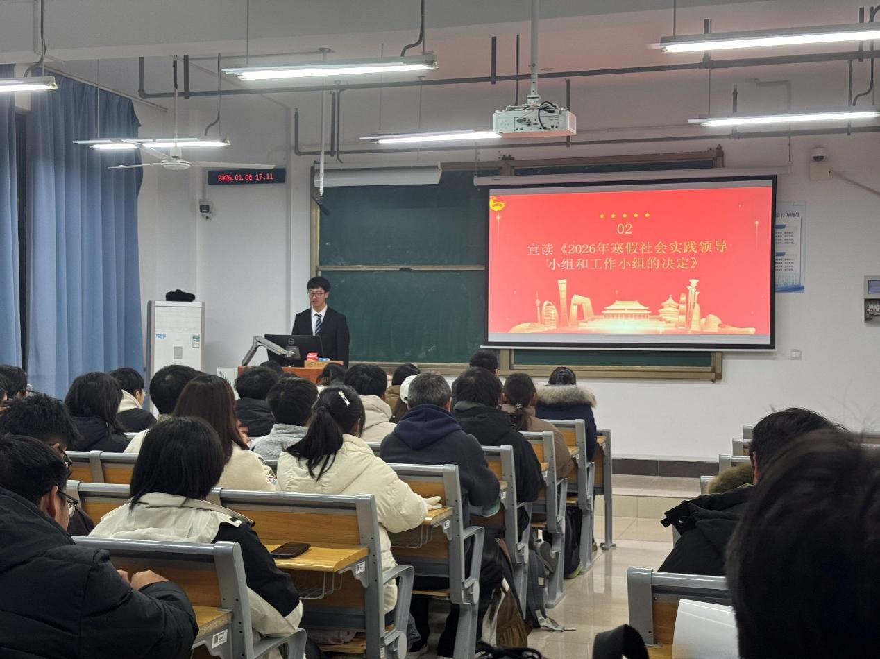 会上王蕊宣读了《2026年寒假社会实践领导小组和工作小组的决定》,明确了组织架构与权责分工。安全是实践的底线,李彤宣读《社会实践突发事件处理预案》,并郑重提醒全体成员,务必提高防范意识,警惕陌生转账要求,遇可疑情况及时反馈,为实践活动的顺利开展筑牢安全“防火墙”。