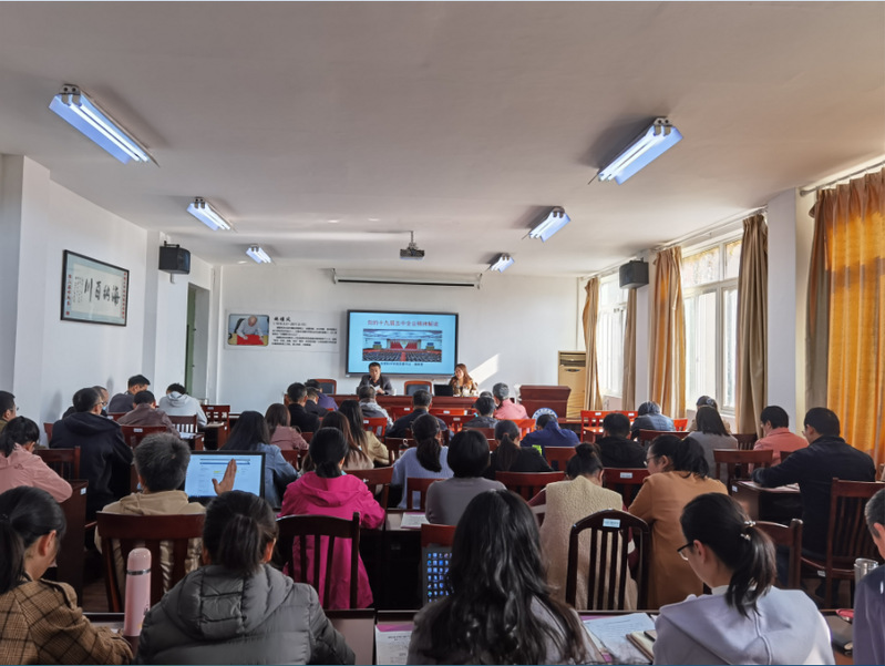 11月11日下午,bat365在线中国官网登录入口召开教职工大会,专题学习党的十九届五中全会精神。学院党委书记潘晴雯为全体教职工做了党的十九届五中全会精神解读,会议由院长兼党委副书记王英利主持。