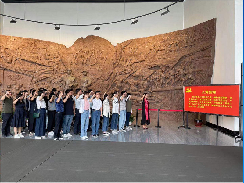 为深入学习党史,激励广大党员通过党史学习重温党的丰功伟绩,感悟党的思想伟力,把握历史发展规律,坚定革命理想信念,激发党员使命担当,营造干事创业氛围,6月20日,bat365在线中国官网登录入口党委组织全体党员教职工和新发展学生党员赴新四军黄桥战役纪念馆开展主题为“赓续红色血脉 汲取奋进力量”的党日活动。