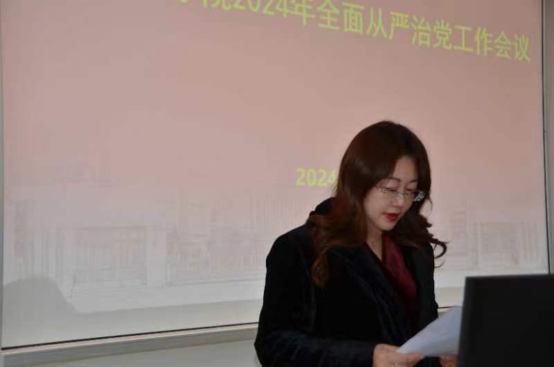 学院党委书记潘晴雯传达了校全面从严治党工作会议精神,并就学院2024年全面从严治党工作提了三点要求:一是要强化责任担当,切实增强全面从严治党的政治定力;二是要凝聚工作合力,有力推进全面从严治党的实践成效;三是要提升监督效能,充分发挥全面从严治党的制度力量。潘书记要求全体党员干部要树牢造福师生的政绩观,带头走好新时代党的群众路线,切实为师生服务。全体党员要立足自身职责,锐意进取、真抓实干,以高质量党建推动高质量发展。