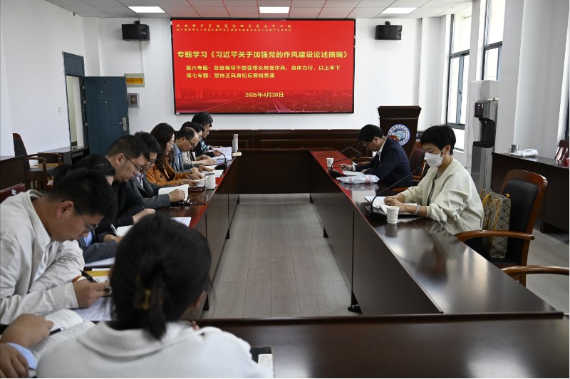 4月28日下午,学院深入贯彻中央八项规定精神学习教育专题读书班举行第六次集中学习研讨。校党委常委、统战部长朱城督导学习并讲话,校学习教育督导组成员张莉莉、唐新林参加会议。会议由学院党委书记潘晴雯主持。