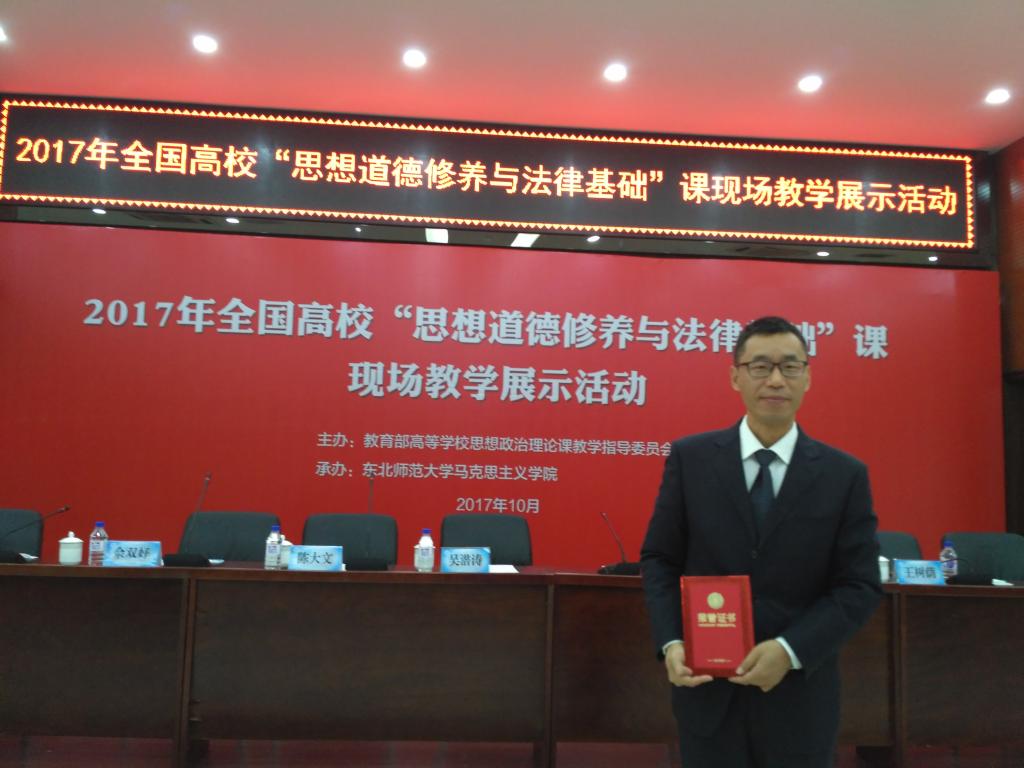 2017年10月14日至15日,由教育部高等学校思想政治理论课教学指导委员会主办的全国高校“思想道德修养与法律基础”课现场教学展示活动在东北师范大学举行。今年会教师李志龙代表山西省参加了现场教学展示,并荣获“全国高校思想政治理论课教学骨干”的荣誉称号。