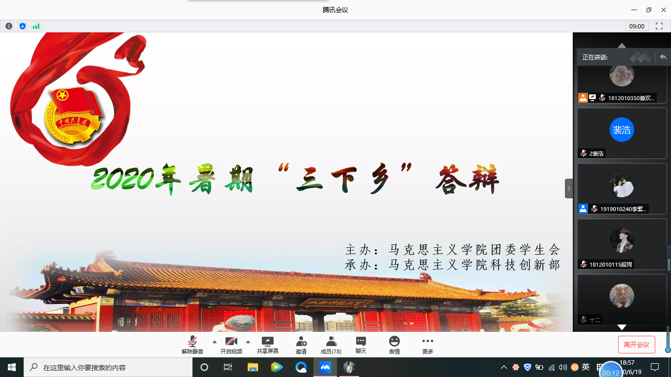 为进一步引导青年学生在社会实践中了解国情,感知社情,体察民情,助力脱贫攻坚,今年会团委于6月19日召开“2020年暑期三下乡社会实践活动”线上答辩会。本次三下乡全体队员参与会议。
