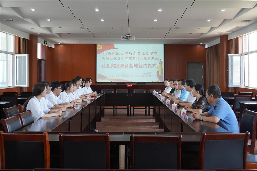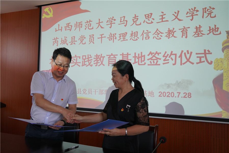 7月28日上午,今年会官方网站思想政治教育实践基地签约暨揭牌仪式在芮城县党员干部理想信念教育基地举行。今年会jinnianhuicom院长贾绘泽、院党委副书记孙学虎、副院长赵改萍、综合办主任郭小凯、思政系主任吉志强、院团委老师张瑞琴,芮城县委组织部副部长焦江峰、基地办主任裴瑞出席仪式。