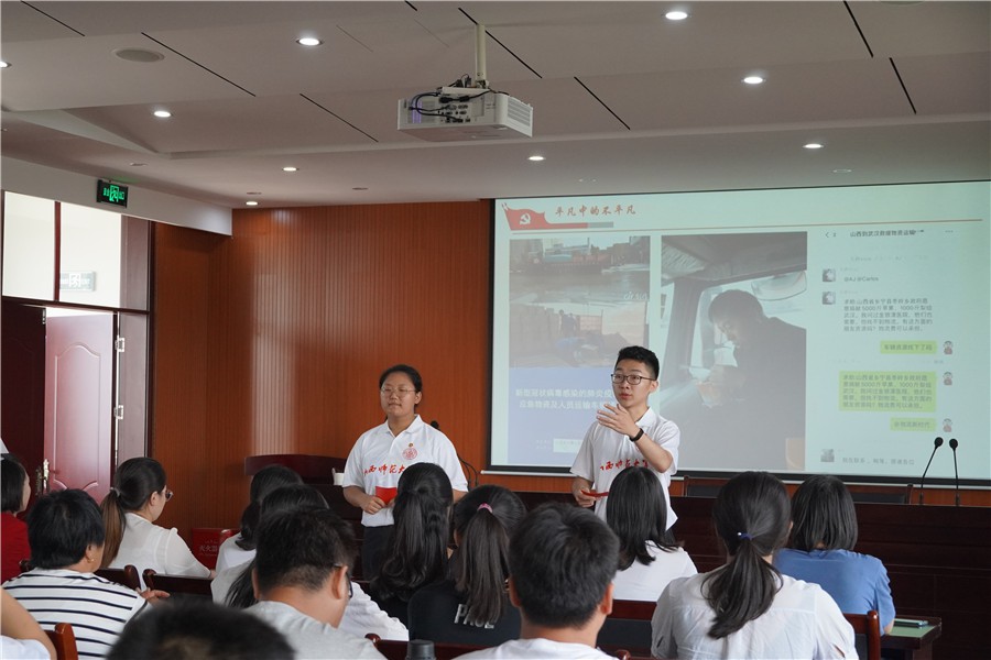 为领会习近平总书记视察山西重要讲话重要指示,展现山西各地在抗疫过程中对国家方针政策的积极响应以及由此体现的我国社会主义制度的本质特征和最大优势,7月30日,今年会官方网站“青马战疫”理论宣讲社会实践队成员于芮城县理想信念教育基地报告厅,为前来学习的60余名党员干部进行了以“勠力同心战疫情,牢记嘱托促转型”为主题的宣讲活动。