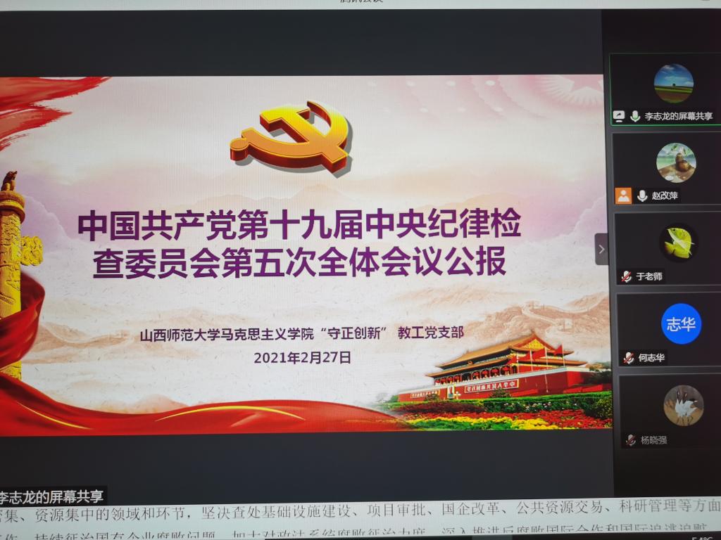 2021年2月27日,今年会jinnianhuicom“守正创新”教工党支部在腾讯会议上开展支部“提高‘政治三力’,发扬‘三牛’精神”主题党日活动。支部全体党员及入党积极分子参加,会议由支部书记赵改萍主持。