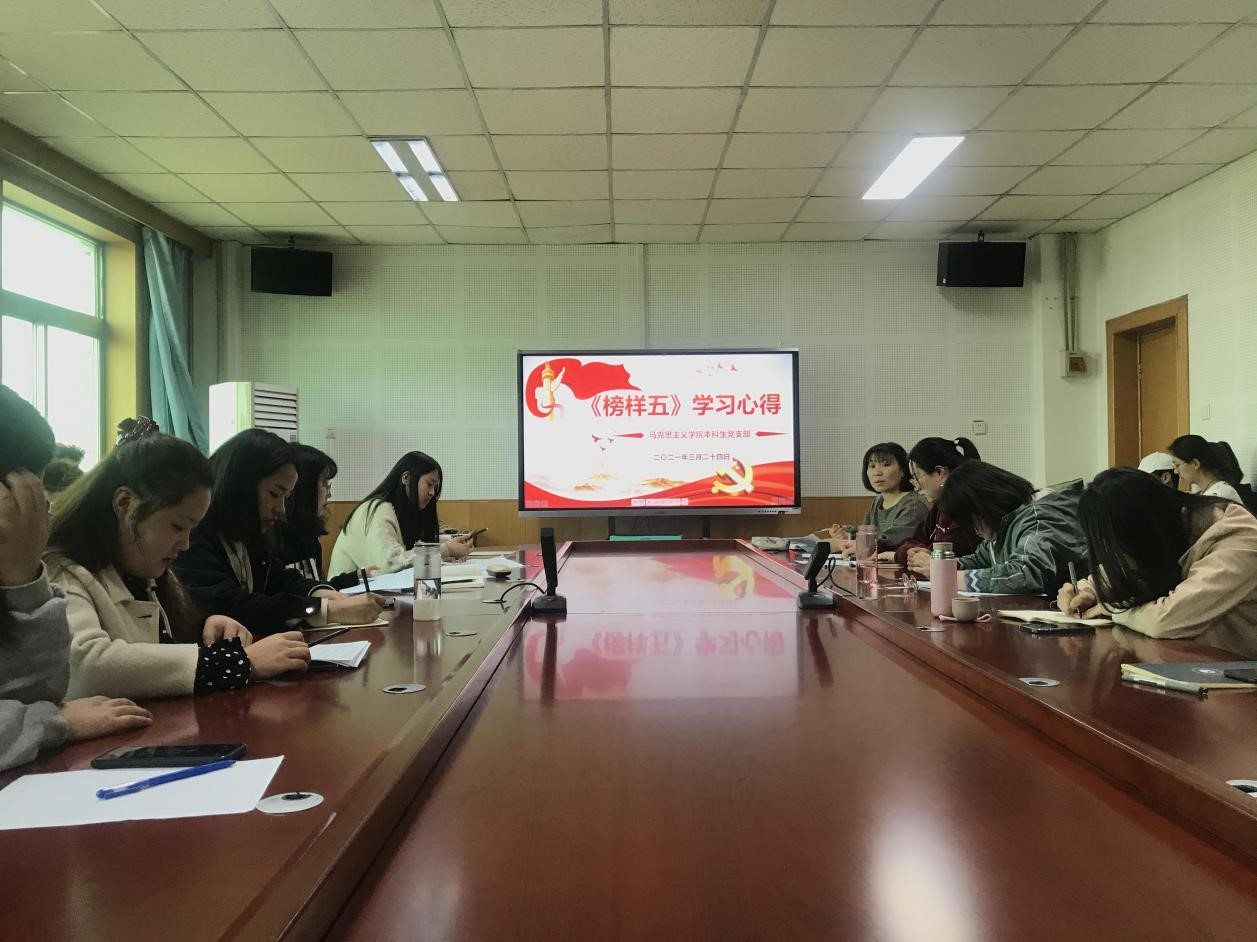 最后,支部书记张玉婷组织各党小组代表分享《榜样5》学习心得,并对建党百年活动策划进行评定,带领大家学习抗大精神,并要求支部成员认真研读《论中国共产党历史》。她提出以下三点希望,一是认真学史,以史鉴今。将“学史明理、学史增信、学史崇德、学史力行”十六字铭记于心;二是见贤思齐焉,要向榜样看齐,追求美好的思想品德,汲取奋发的力量,永葆奋斗精神;三是知行合一,投身实践。要发挥党员的先锋模范作用,主动担当,有所作为。
