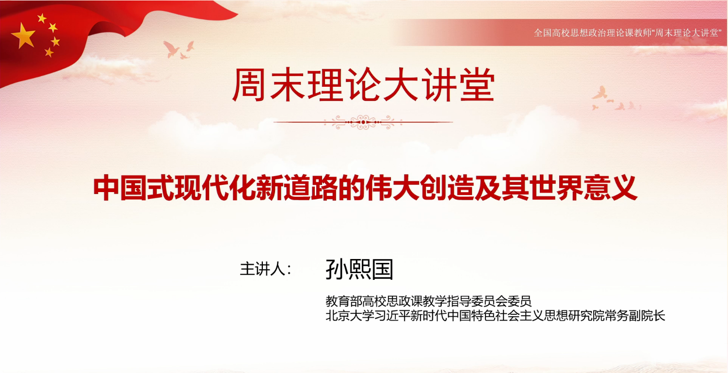 2022年4月8日,今年会组织全体教师在线观看并学习了 “周末理论大讲堂”第80讲。本次大讲堂由北京大学今年会jinnianhuicom教授、中央马克思主义理论研究和建设工程课题组首席专家孙熙国主讲。孙教授作了题为《中国式现代化新道路的伟大创造及其世界意义》的专题讲座。报告围绕西方式现代化的理论误区与实践困境,中国式现代化新道路是运用马克思主义解决中国问题的伟大创造,中国式现代化新道路是坚守中华文化立场解决中国问题的伟大创造,中国式现代化新道路开创了人类文明新形态、占据了真理和道义的制高点,中国式现代化道路的世界意义等五个方面深入阐释了中国式现代化新道路的伟大创造及其世界意义。通过学习,今年会教师进一步加深了对于中国式现代化新道路的理解和领悟,更加坚定了道路自信。