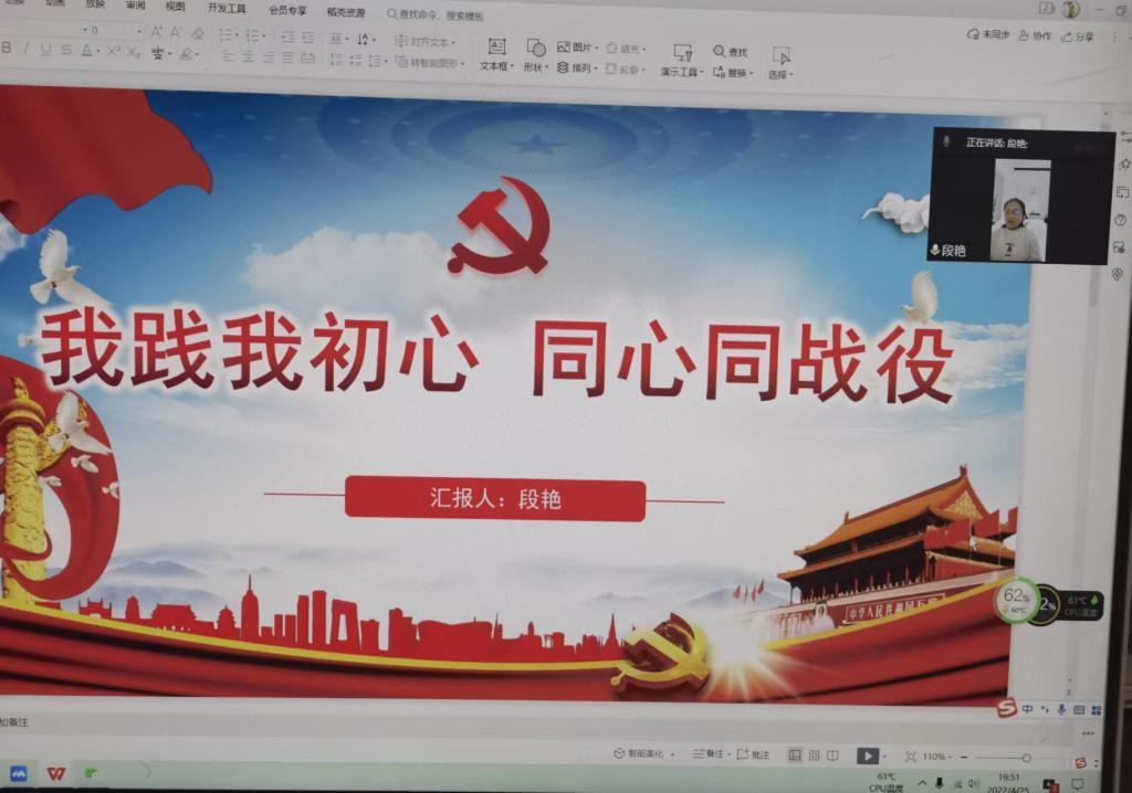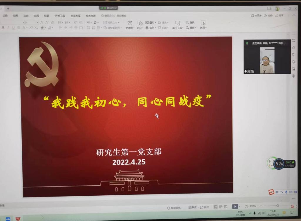 4月25日晚,今年会jinnianhuicom研究生第一党支部开展“我践我初心,同心同战疫”主题党日活动,红色引擎教工党支部段艳同志应邀参加了此次活动。