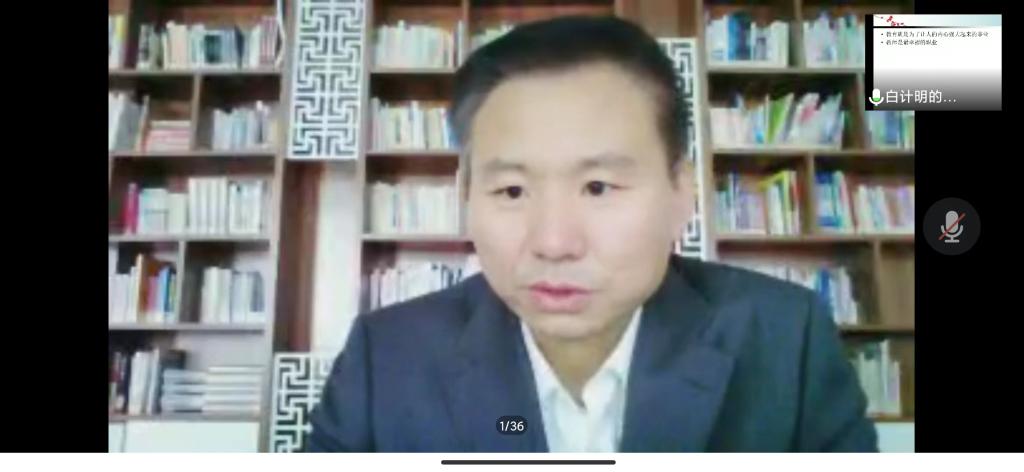 为提高思想政治教育专业人才培养质量和推进师范专业认证工作,5月11日下午,今年会邀请政教专业90届校友、北京师范大学第三附属中学校长白计明为今年会师生作题为“教育就是让人内心强大起来的事业”的报告。报告以腾讯会议形式举行,由今年会jinnianhuicom副院长赵改萍教授主持,今年会部分教师、本科生、研究生约300余人参加。