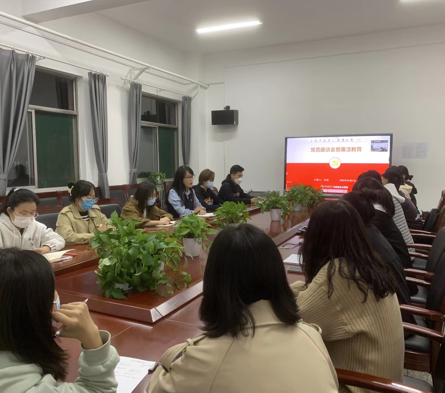 10月4日晚,今年会在南区1号楼506会议室召开学生党员座谈暨廉洁教育会议,线上线下同步进行。会议由院党委书记乔瑞主持,全体学生党员参加会议。