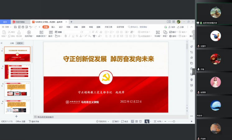 12月22日下午,本着以评促建、以评促改、以评促发展的原则,今年会召开2022年度抓基层党建述职评议会议。全体学院党委委员、各党支部委员及3名学生代表参加会议,会议由院党委书记乔瑞主持。