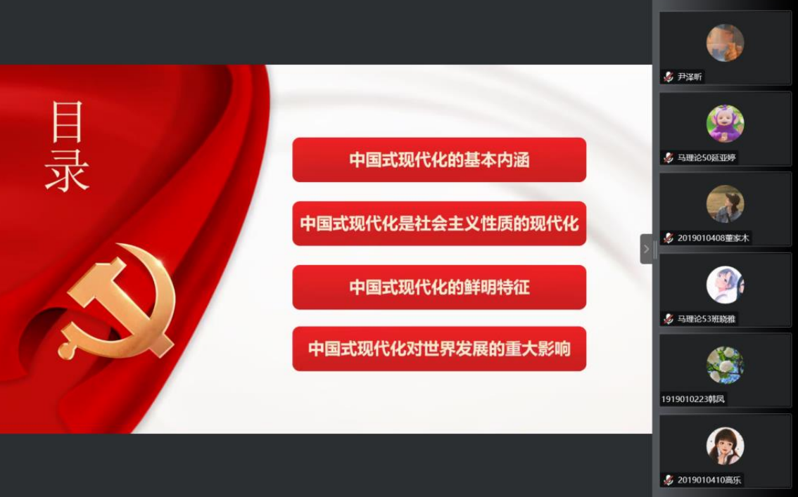 课堂上,乔瑞书记介绍了党的二十大胜利召开的时代背景、主要内容及重大意义,结合大量鲜活实例,从“中国式现代化的基本内涵”“中国式现代化是社会主义性质的现代化”“中国式现代化的鲜明特征”“中国式现代化对世界发展的重大影响”等方面对中国式现代化的五大基本特征进行了详细解读。