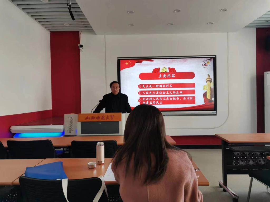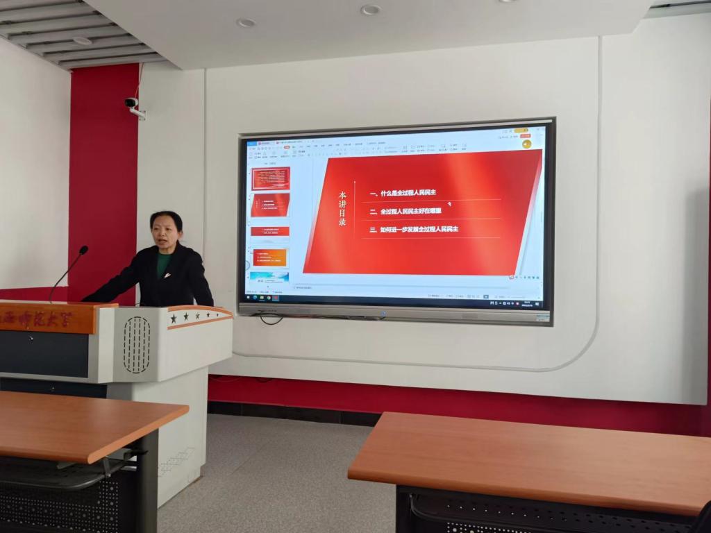 3月17日下午,习近平新时代中国特色社会主义思想概论教研室在八号楼虚拟教室进行集体备课。此次备课围绕“发展全过程人民民主”开展说课,副院长赵改萍院长及全体教研室教师参加,会议由教研室主任胡志远主持。