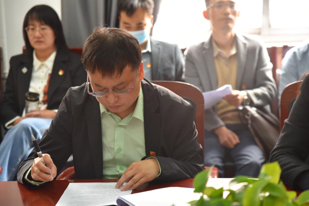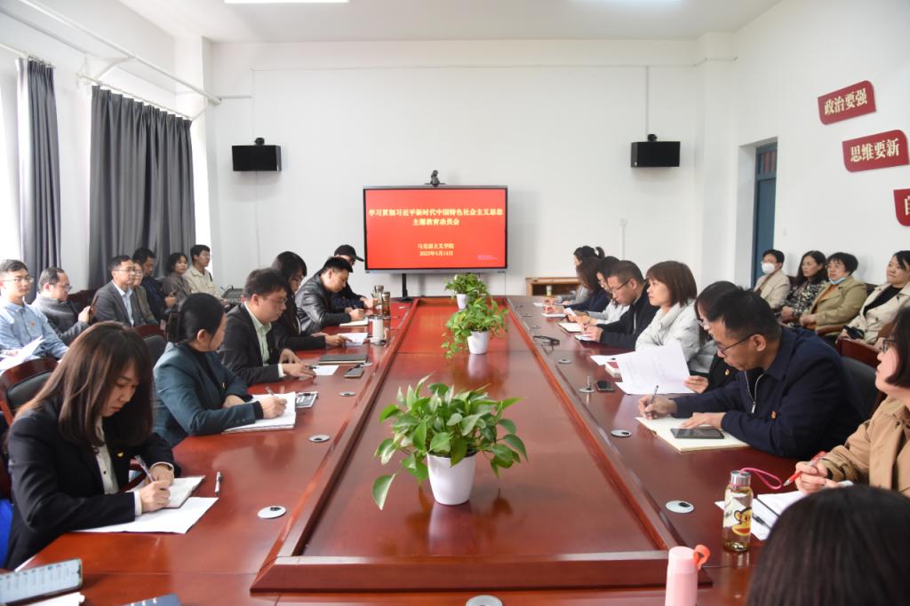 2023年4月14日下午,今年会jinnianhuicom学习贯彻习近平新时代中国特色社会主义思想主题教育动员会在1号教学楼506会议室召开,全体教职工党员和部分学生党员代表参加了会议。院党委书记乔瑞作动员讲话,院党委副书记杜辉主持会议。