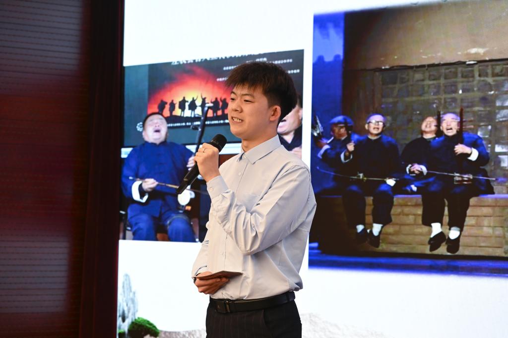 我校青年学生作为宣讲人,深情讲述了他们沿着习近平总书记考察调研山西的足迹,循着三晋大地历史文化脉络,深入省内10余个县市,对50余处非遗项目走访时的所见所闻所感。“老陈醋酿制技艺”沉淀匠心传承、“霍州年馍”成为霍州人“富口袋”的重要支柱、“左权开花调”创新推出宣传党的二十大精神的歌曲、“挠羊赛”展现出力量与智慧的较量……一个个具有鲜明地方特色的非遗展现出博大精深的文明、弦歌不辍的传承,视频、课件、音乐与宣讲相得益彰,为现场观众带来了全新的视听体验。
