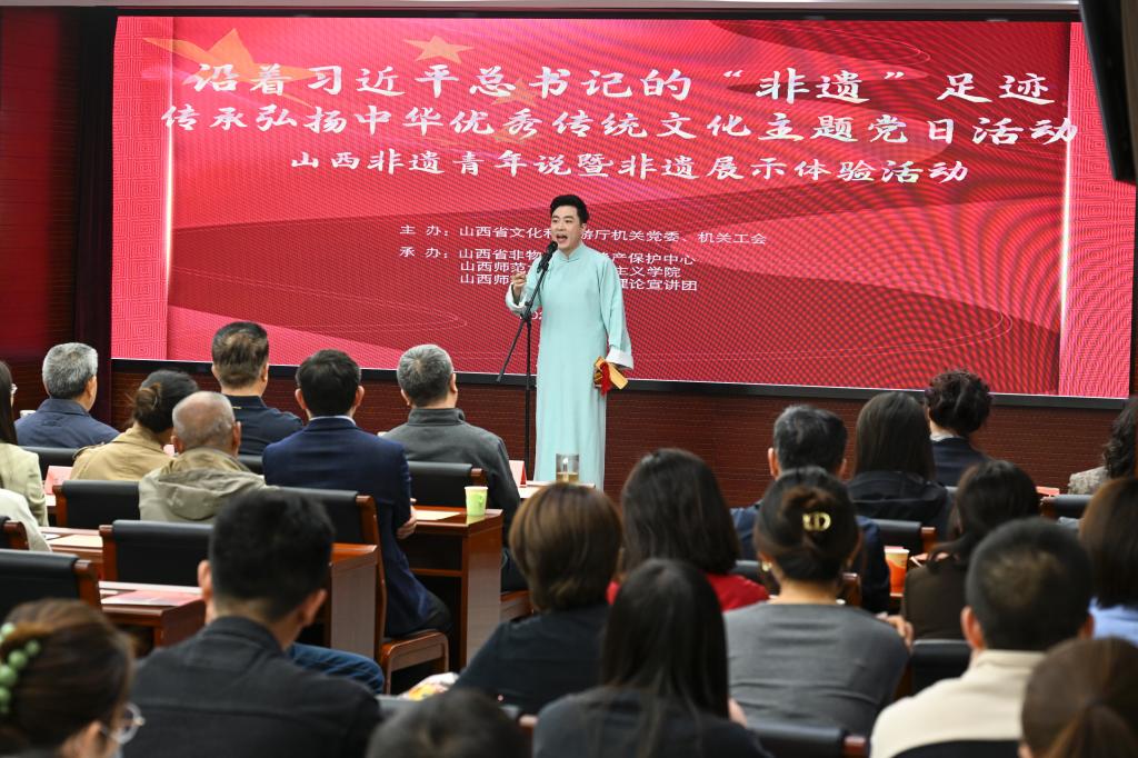 活动分“山西非遗青年说”、山西“非遗”传承人现场展演以及非遗展示体验活动三个环节,以小故事阐释大主题,生动解读了习近平总书记关于非物质文化遗产保护工作重要指示精神,引导广大青年党员、干部职工肩负起“推进文化自信自强 铸就社会主义文化新辉煌”的使命担当。