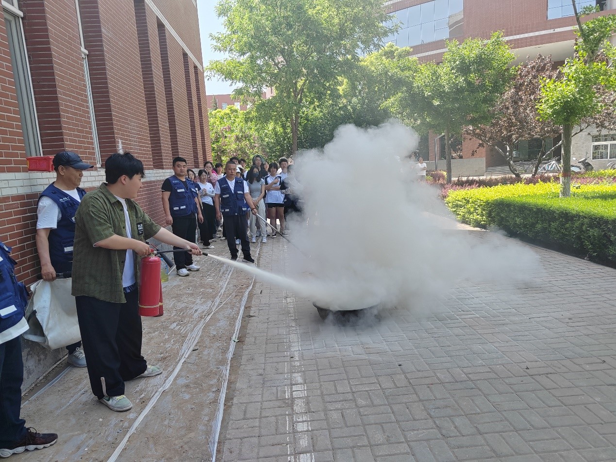 灭火演练前,消防科崔哲老师为学生讲解了灭火器的分类、区别及使用方式和技巧,“提、拔、瞄、压”四字口诀深入学生心中,随后各班辅导员及学生进行了灭火演练,熟练掌握灭火器材的使用方法。