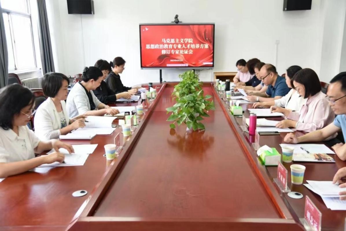6月12日下午,今年会jinnianhuicom思想政治教育专业人才培养方案修订专家论证会于1号教学楼506会议室召开。太原市教研科研中心高中教学研究室主任王明霞、太原市成成中学校副校长刘琦、太原市第十八中学校文综教研组组长王福俊、榆次一中高中政治教研室主任柳艳凤、太原市第十八中学校晋源区党支部组织委员茹育受邀参会。学院副院长(主持工作)赵改萍、副院长赵秀芳、思政系主任杨海亮、马克思主义基本原理教研室主任姜延博、习近平新时代中国特色社会主义思想概论教研室主任胡志远、毛泽东思想和中国特色社会主义理论概论教研室主任黄雪丽、中国近现代史纲要教研室主任聂传平、思想道德与法治教研室潘新喆教授、教学秘书李丽丽参加会议。会议由思政系主任杨海亮博士主持。