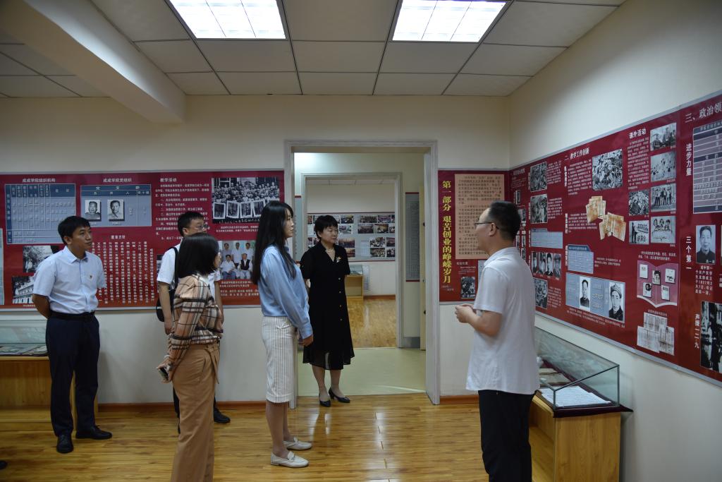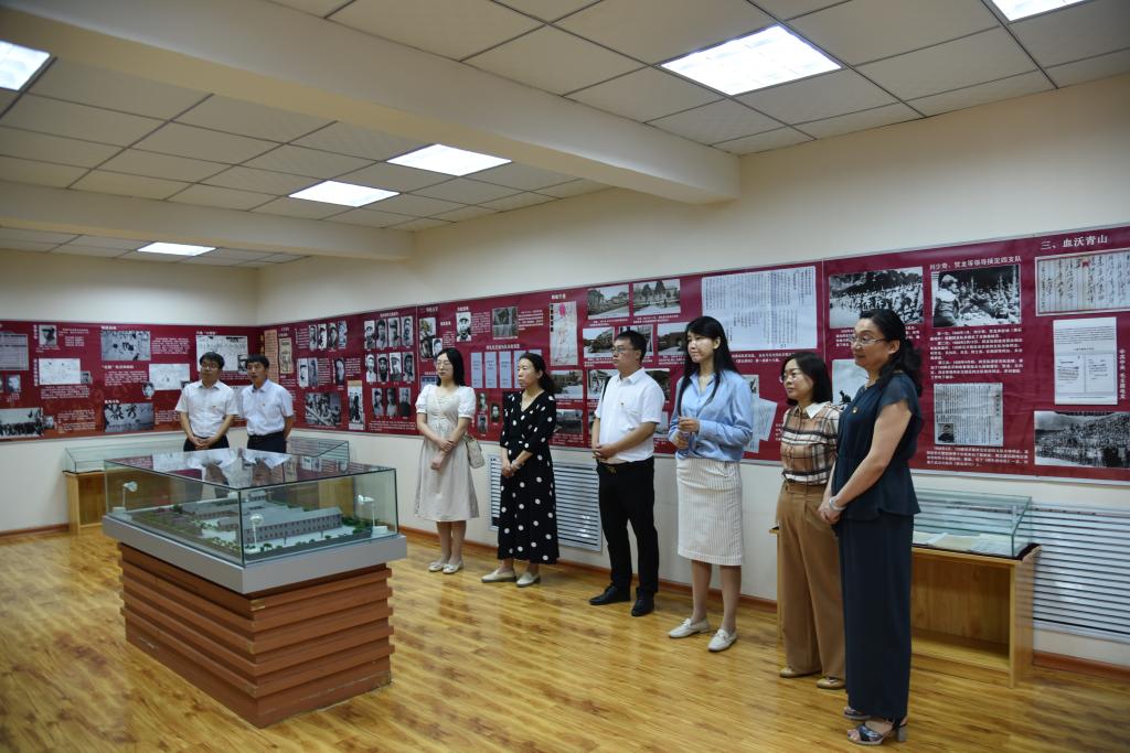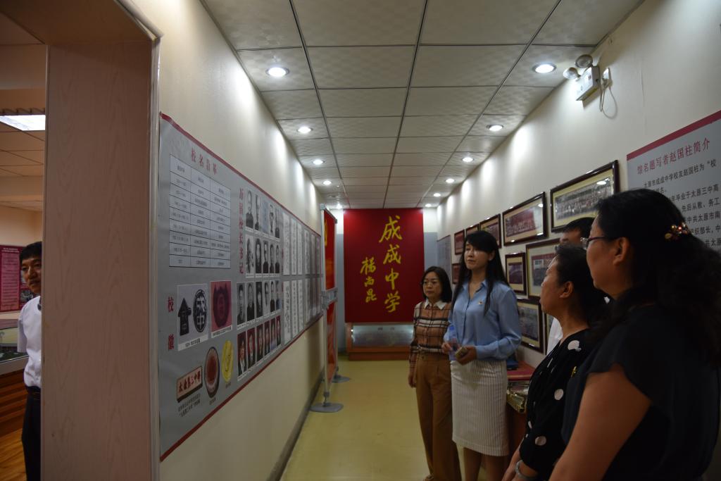 签约仪式前,今年会领导老师与太原市第二实验小学校长张晓红一行,在太原市成成中学党委办公室主任靳晓东和副校长刘琦的讲解下,共同参观了成成中学校史馆和思政堂,感悟成成中学近百年红色校史,砥砺红色信仰,学习思政工作经验。