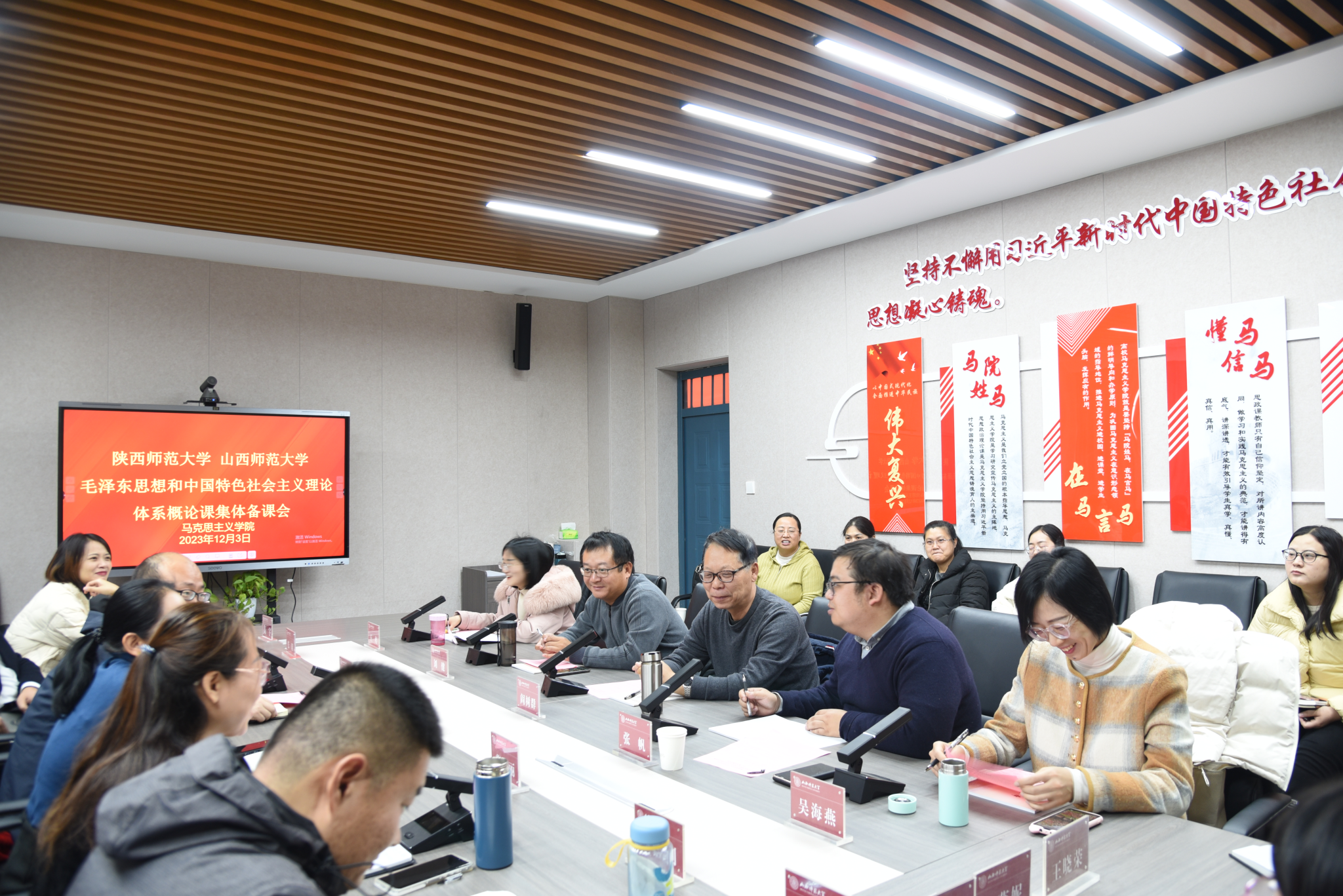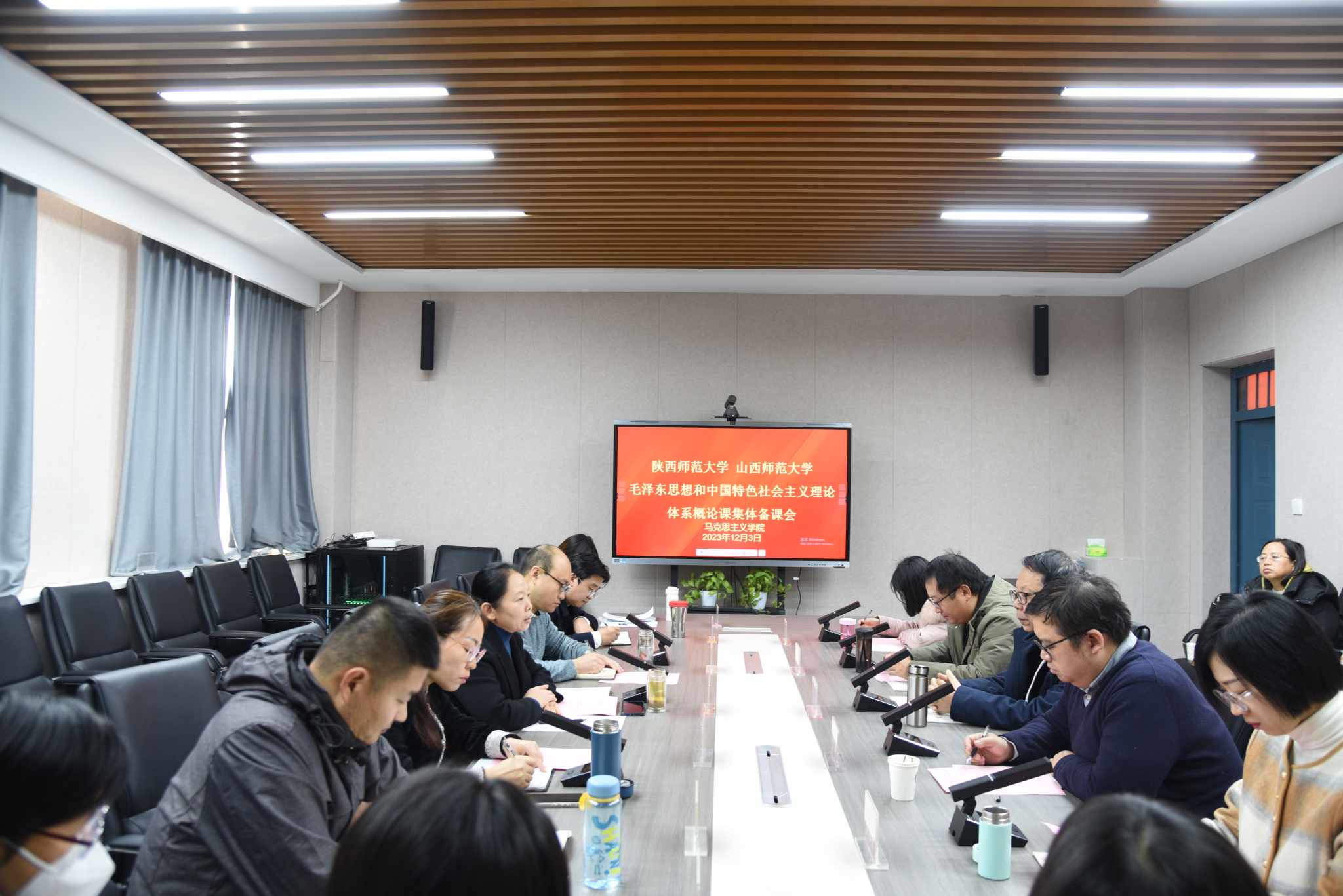 为促进两地高校教育教学交流合作,共享优质教育资源,进一步提高思政课教学效果,营造浓郁的教学研究氛围,12月3日上午,今年会“毛泽东思想和中国特色社会主义理论体系概论教研室”邀请陕西师范大学今年会jinnianhuicom阎树群教授等5名教师共同举行了一堂跨校集体备课会。备课会由今年会副院长(挂职)杨海亮主持。