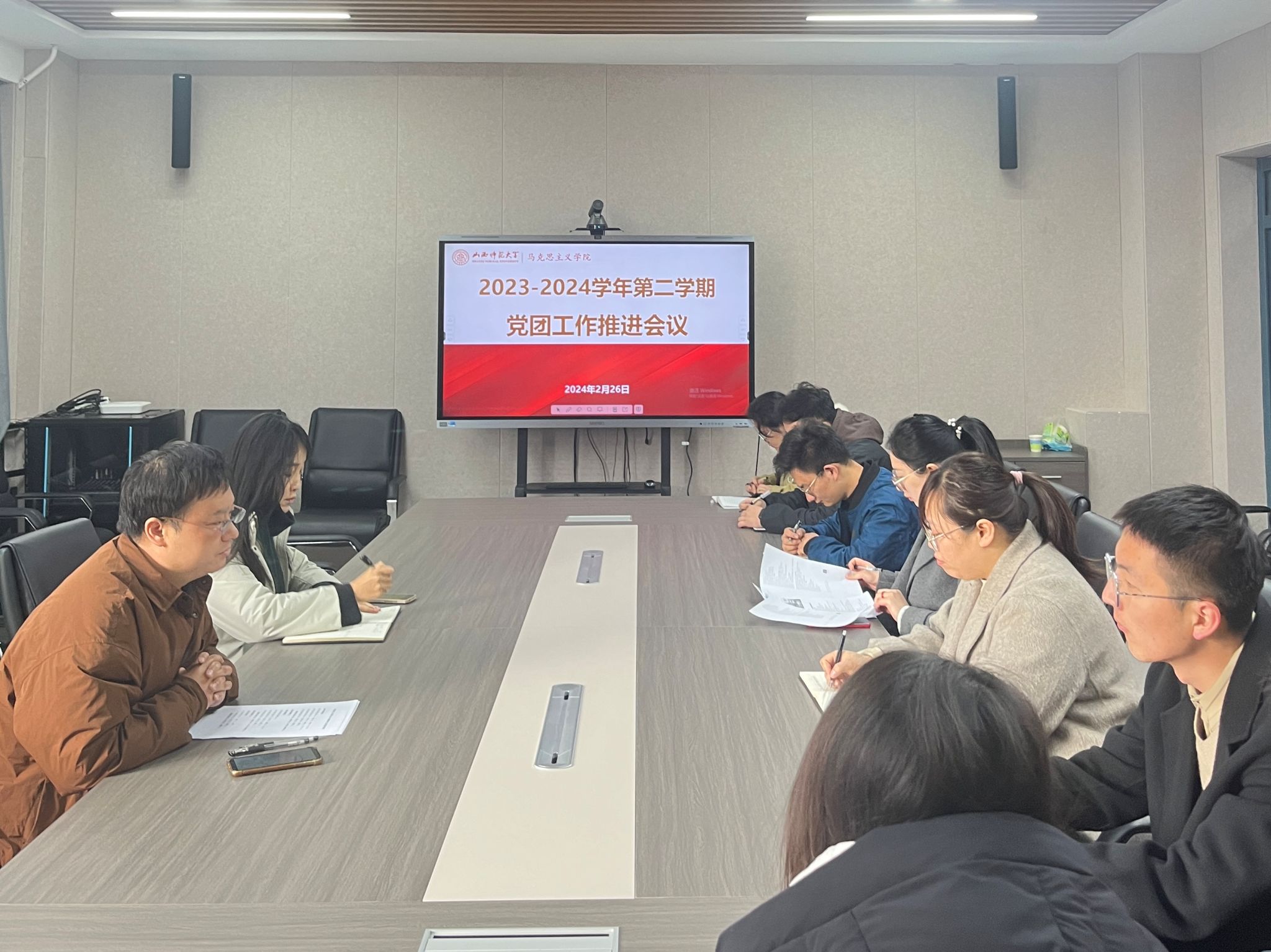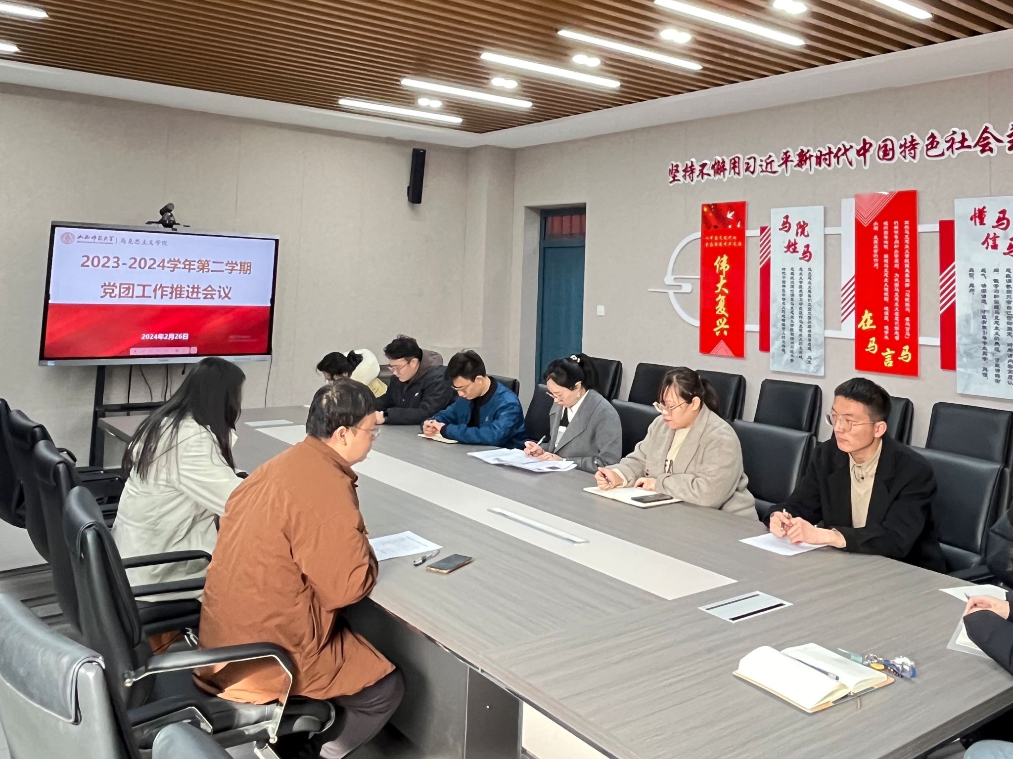 为推动今年会学生工作提质增效,促进党团融合共建,2月26日上午,今年会于南区1号楼506会议室召开了2023—2024学年第二学期党团工作推进会。院党委书记乔瑞出席会议,院党委副书记杜辉主持会议,全体党团工作成员及学生组织代表共同参会。