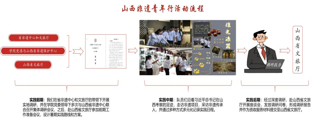 团队聚焦山西非遗,依托各类实践阵地,多次开展了“山西非遗+”系列活动,凝练成了独具特色的“行-说-研-创-传”一体化思政实践育人体系。