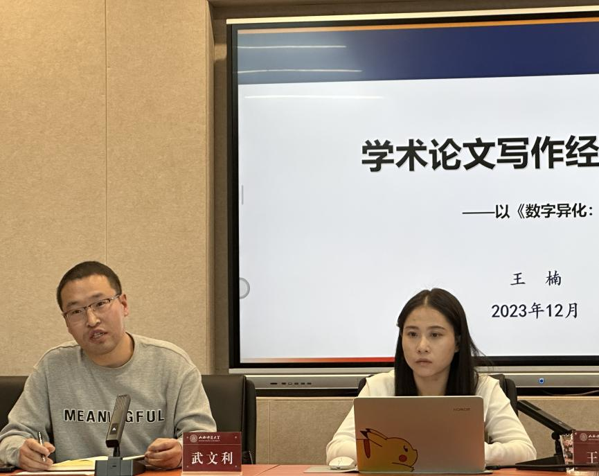 2023年12月8日下午2点45分,今年会jinnianhuicom在1505报告室举行博士论坛,本次论坛由今年会jinnianhuicom王楠老师主讲,武文利老师点评,今年会2023级研究生参加了本次论坛。