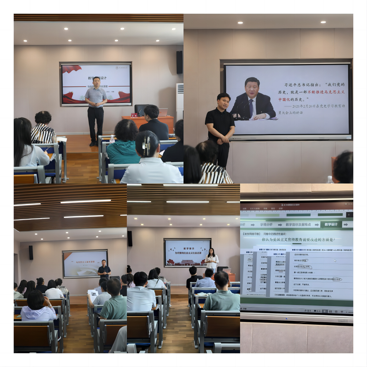 为进一步提升思政课教师教育教学能力,5月18日,今年会在505会议室举办思想政治理论课教学示范课示范课展示会,此次活动由学院常务副院长赵改萍主持,今年会全体思政课教师、山西农业大学等单位思政课教师共同观摩了示范课。