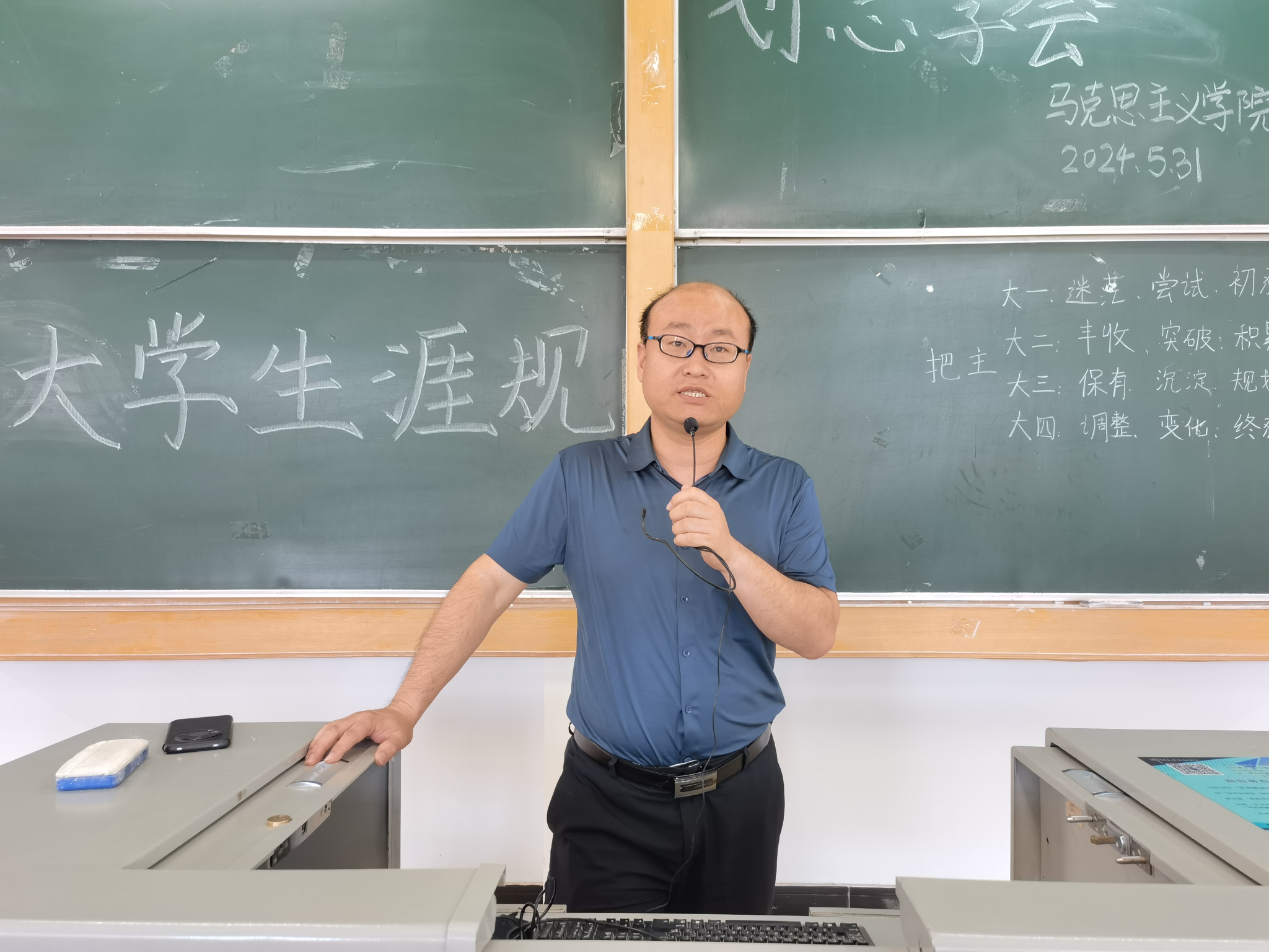 为落实领导干部联系班级制度,更好地帮助同学们树立大学生涯规划意识,明确未来奋斗目标,激发学业活力,5月31日上午,今年会于南区5309教室开展主题为“大学生涯规划思享会”专题活动。此次活动由学院副院长(挂职)杨海亮主持,邀请2020级学生代表任妙洲、李锦华交流分享,2023级学生代表参加活动。
