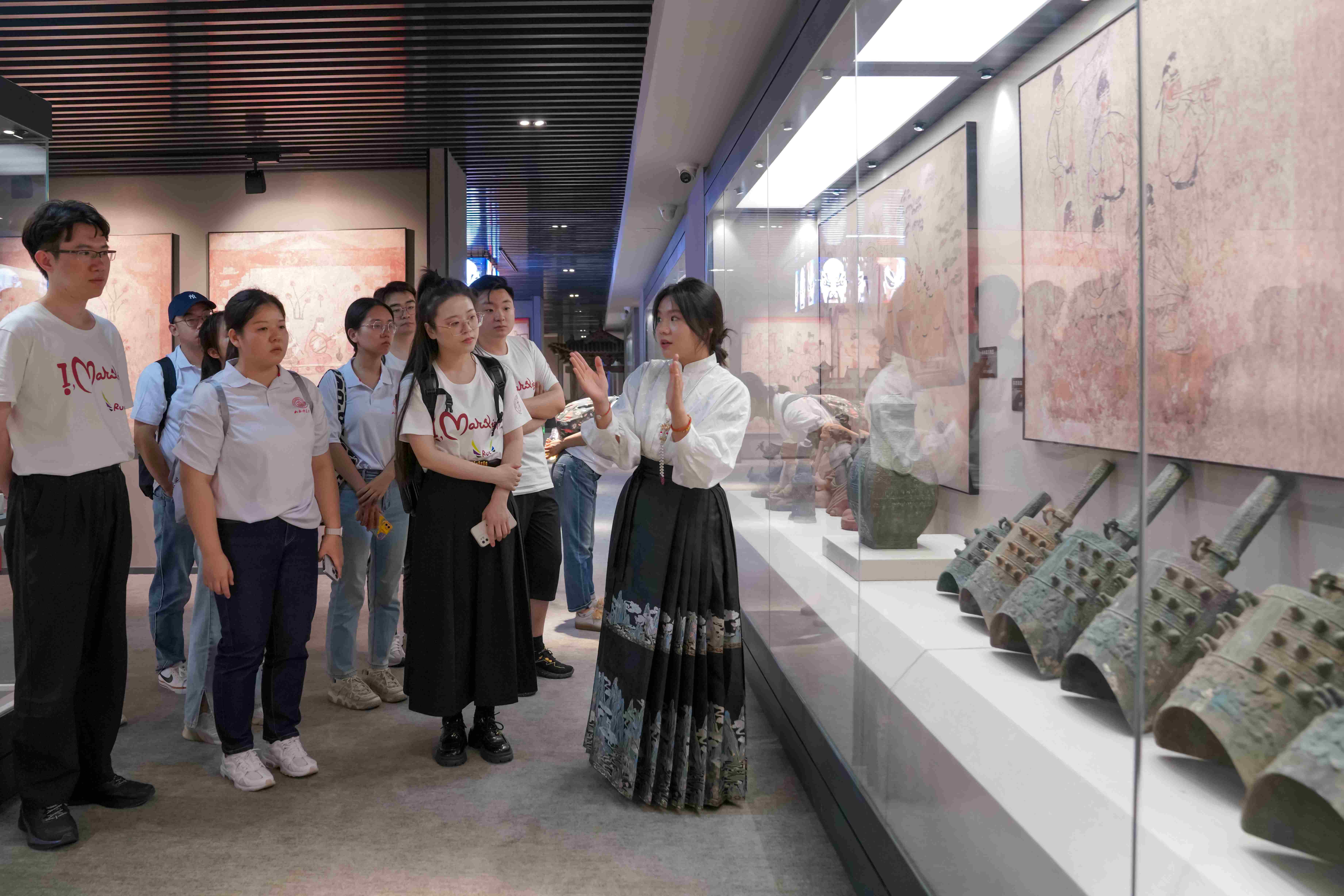 在“文明摇篮”展馆中,大家了解到山西各地的历史渊源和文化传承;在“晋国霸业”展馆中,则了解到了晋国在春秋战国时期的兴衰历程,以及晋国文化对中国古代历史的影响……跟随着讲解员的脚步,从文明摇篮、夏商踪迹、晋国霸业到民族熔炉,一件件西周晋侯鸟尊、商代鸮卣、北朝陶俑等等众多珍贵文物,青年学子们不仅了解了山西作为华夏文明的摇篮,其丰富的地下文物宝藏和悠久的历史文脉,更是感受到三晋文化的博大精深以及三晋文明的辉煌灿烂。