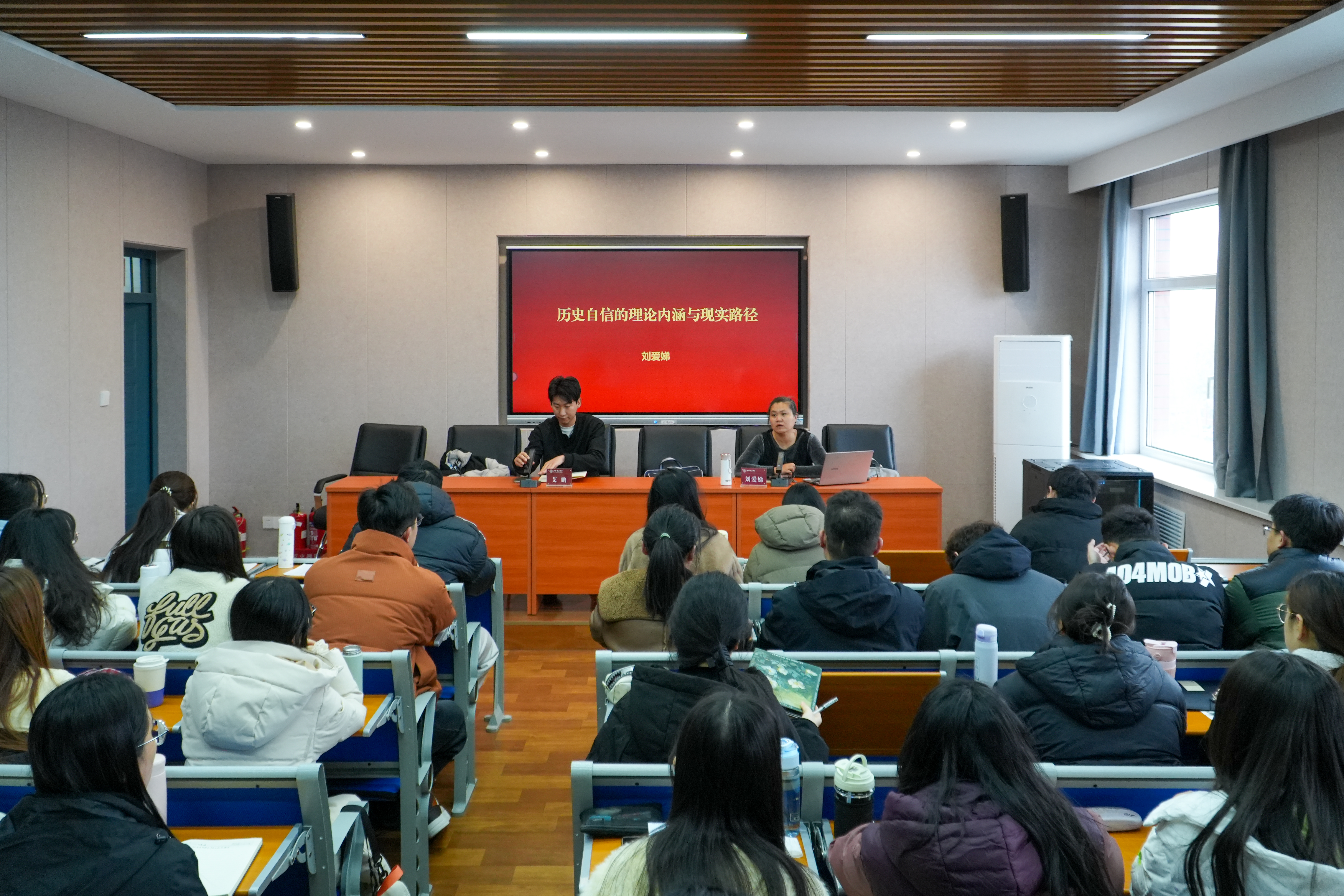 刘爱娣老师以《中国共产党历史自信的理论内涵与现实路径》为题作报告。首先,中国共产党的历史自信源于对历史的书写、马克思主义政党的政治本质、百年奋斗创造的辉煌成就和成功经验、科学的历史观和深厚的历史文化根基。其次,中国共产党的历史自信说到底是一种文化自信。坚定中国特色社会主义道路自信、理论自信、制度自信,说到底是要坚定文化自信,文化自信是最基本、最深沉、最持久的力量。同时历史自信也是一种理论自信。实践告诉我们,中国共产党为什么能,中国特色社会主义为什么好,归根到底是马克思主义行,是中国化时代化的马克思主义行。拥有马克思主义的科学理论指导是我们党坚定信仰信念、把握历史主动的根本所在。再次,从历史自信的现实路径来看:第一,要树立正确历史观和党史观。中国共产党坚持唯物史观,正确的党史观、大历史观,以及书写历史和总结经验的科学方法论。第二,要坚定“四个自信”,以坚定历史自信。中华民族五千多年的文明史,创造了源远流长、影响深远的哲学智慧、人文精神、社会理想和追求。这是我们深厚的历史文化根基。第三,要在推进中国式现代化建设的过程中推进历史自信。中国式现代化,是中国共产党领导的社会主义现代化,既有各国现代化的共同特征,更有基于自己国情的中国特色。要坚持在党的领导下推进中国式现代化,坚定历史自信既体现传承,更体现创新和发展。