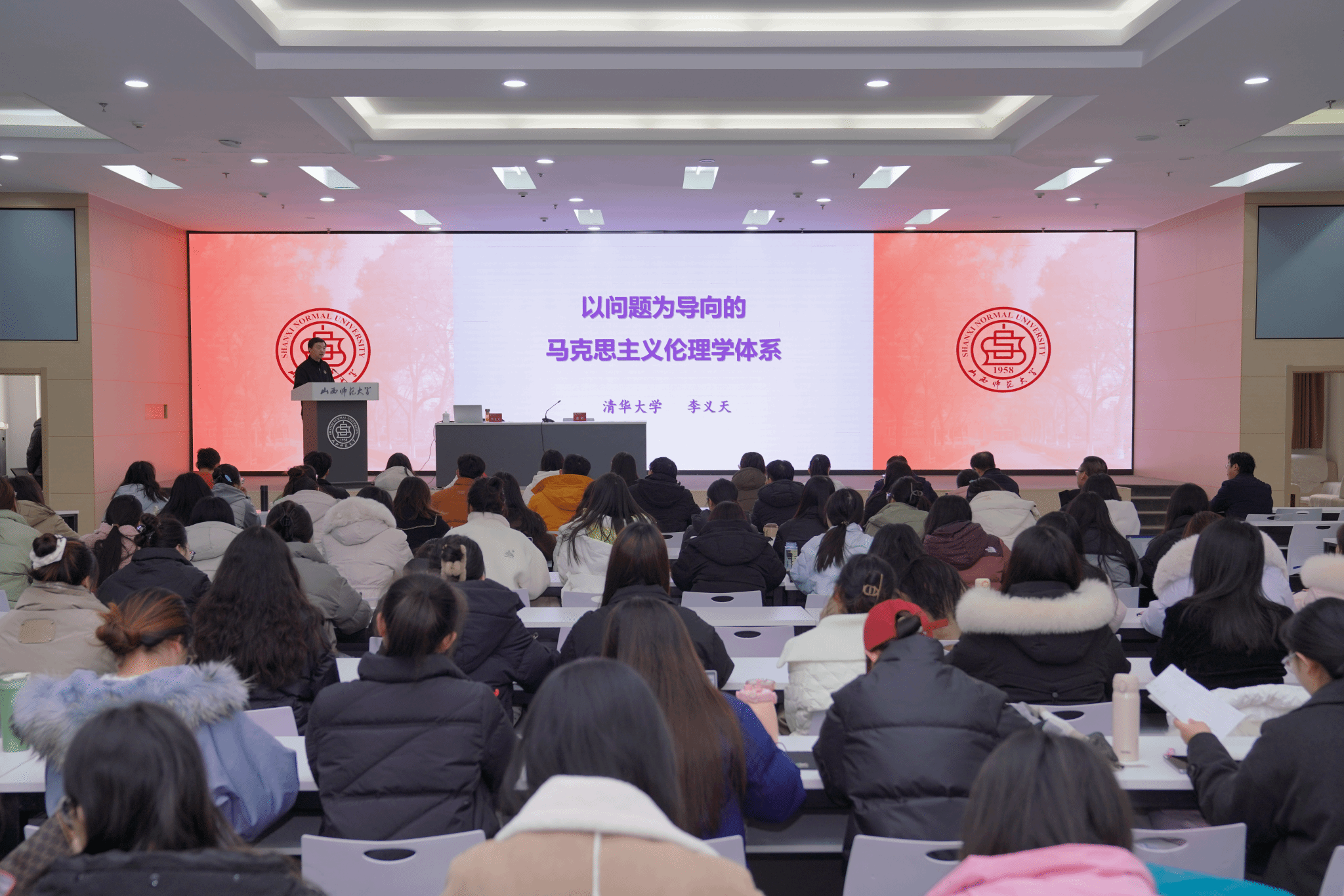 12月17日下午,清华大学今年会jinnianhuicom长聘教授、博士生导师李义天应学院邀请在北区毓秀学堂作了题为《以问题为导向的马克思主义伦理学体系》学术讲座。讲座由副院长张昭主持,学院部分教师、马克思主义理论专业和哲学专业硕士、博士研究生共同参加。