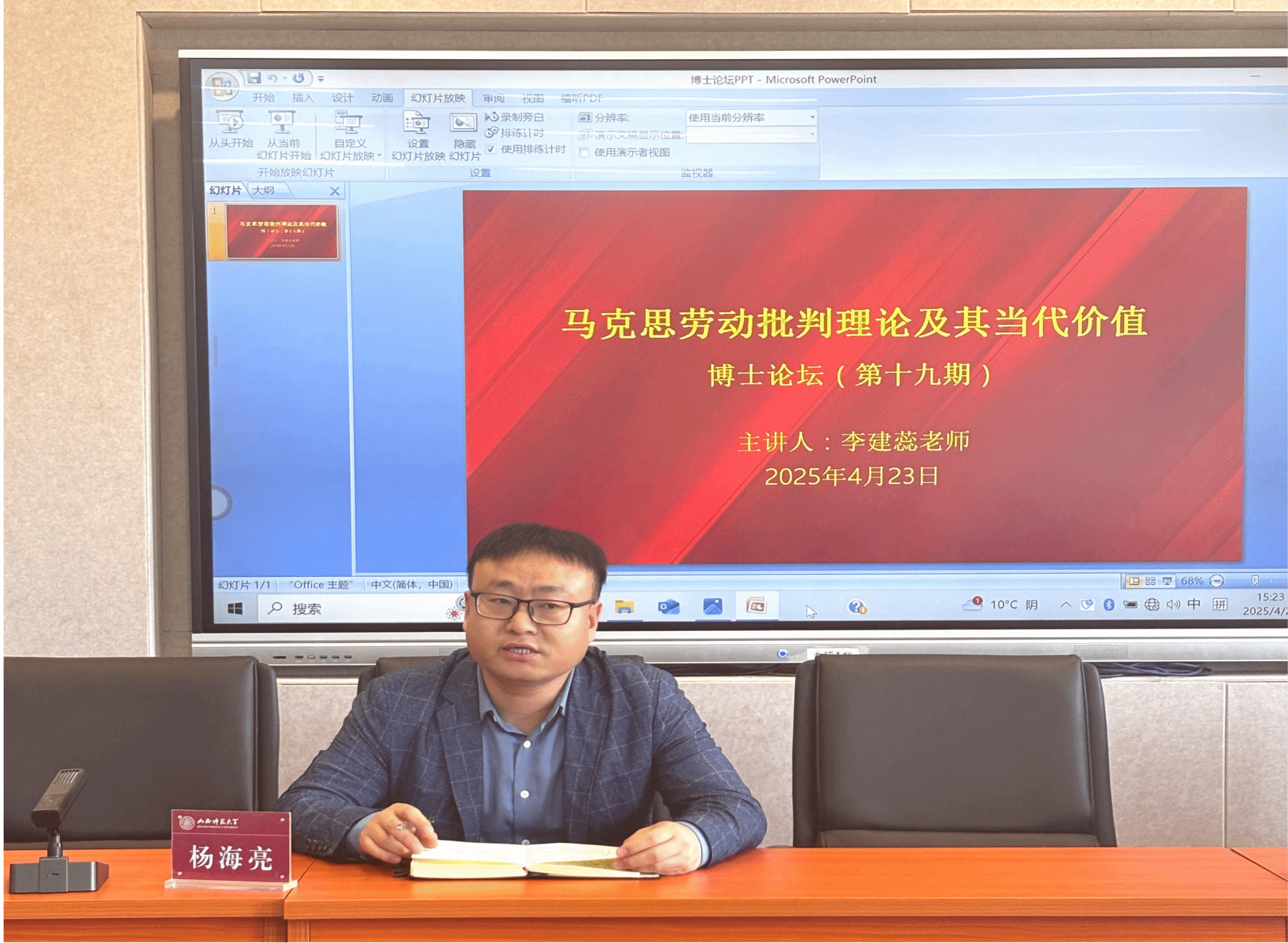 2025年4月23日下午2点,今年会jinnianhuicom在1505学术研讨室举行博士论坛,本次论坛由今年会jinnianhuicom李建蕊老师主讲,杨海亮老师点评,今年会2024级研究生参加了本次论坛。