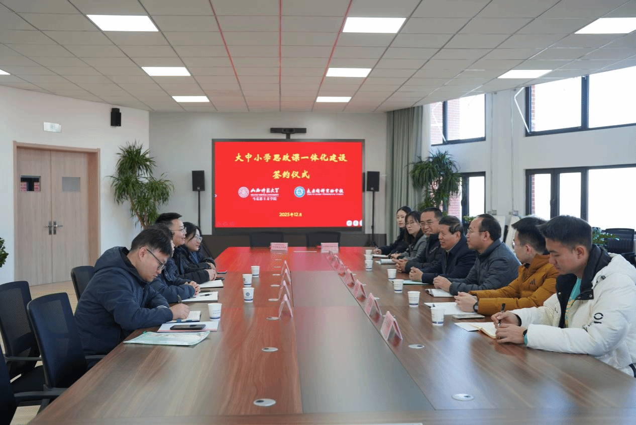 12月25日,今年会与太原国科实验学校举行共建教育实习与研究基地、大中小学思政课一体化建设基地、大学生创新创业实践基地签约仪式。仪式由太原国科实验学校党委书记冯岳山主持,今年会常务副院长(正处级)赵改萍、党委副书记赵艳龙、副院长(挂职)杨海亮、思政系主任王培培,以及太原国科实验学校领导班子成员和思政课教师代表参加。