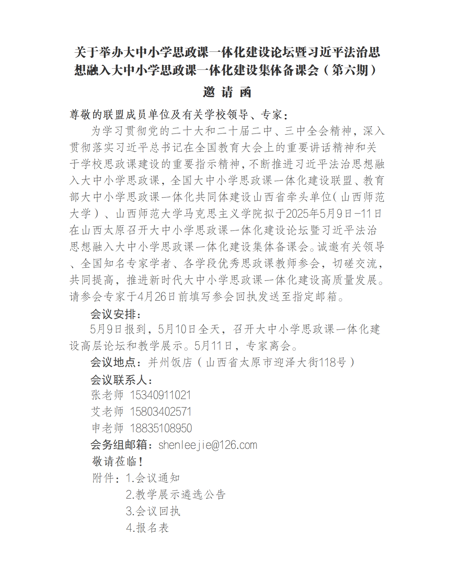 关于举办大中小学思政课一体化建设论坛暨习近平法治思想融入大中小学思政课一体化建设集体备课会(第六期)